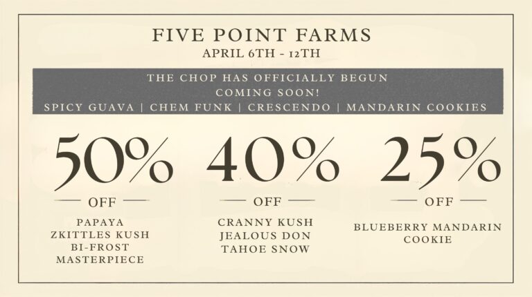 At Five Point Farms, a microbusiness means personalized cultivation and bespoke care at every step, where each plant is nurtured to its full potential. We embody the essence of small-scale, high-quality production, ensuring that our craft cannabis not only meets but exceeds the discerning expectations of our customers.
